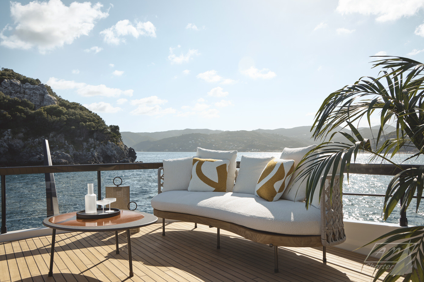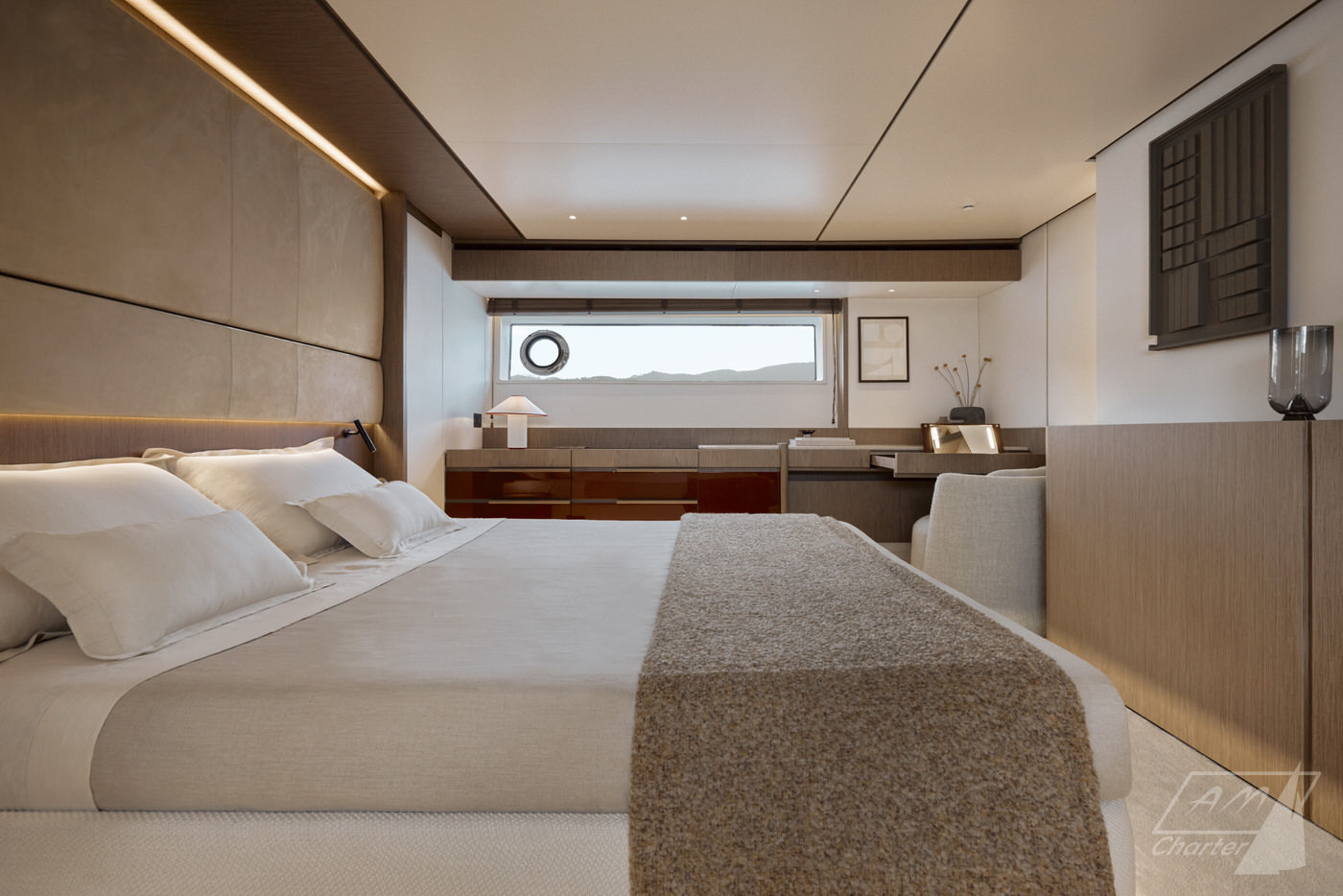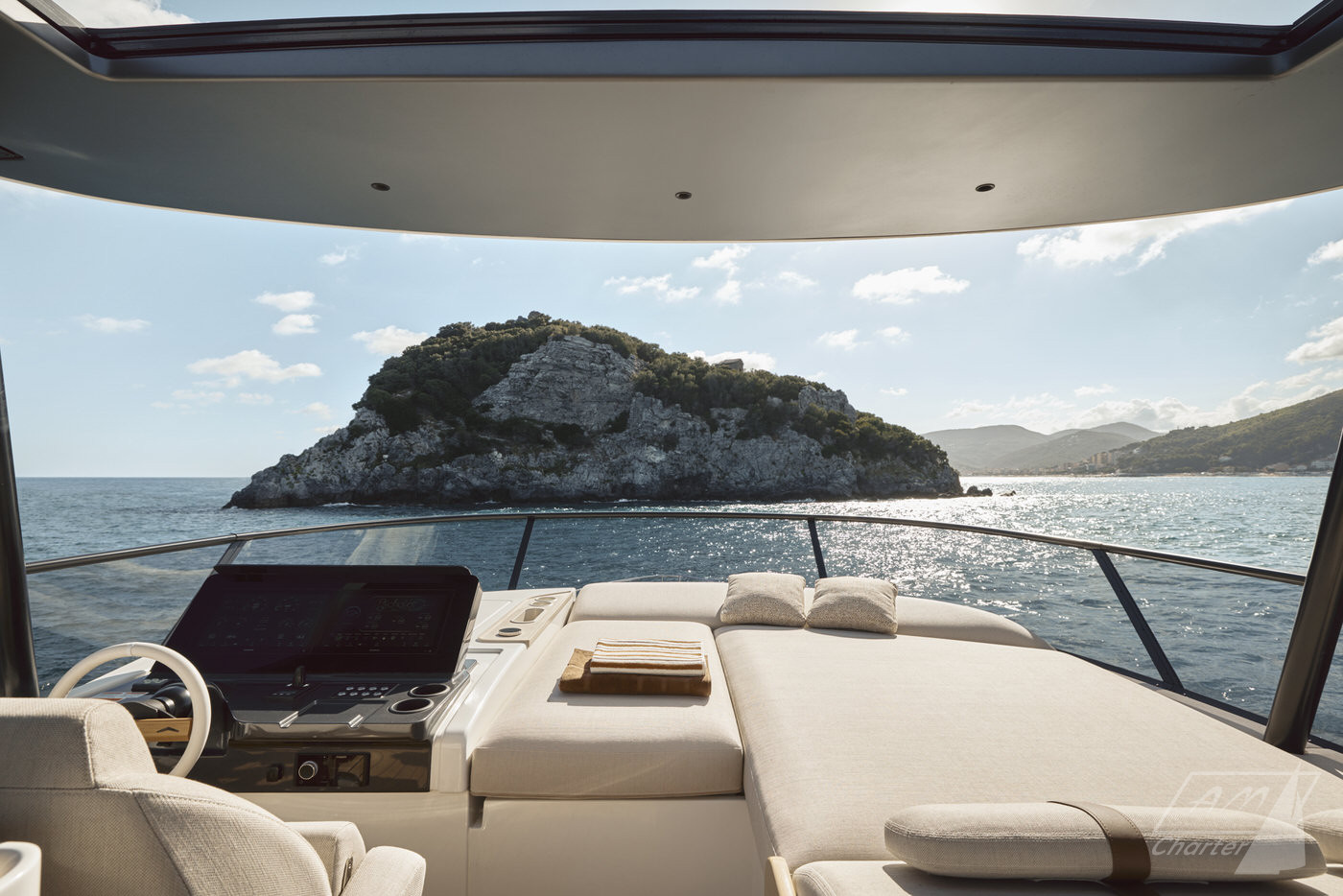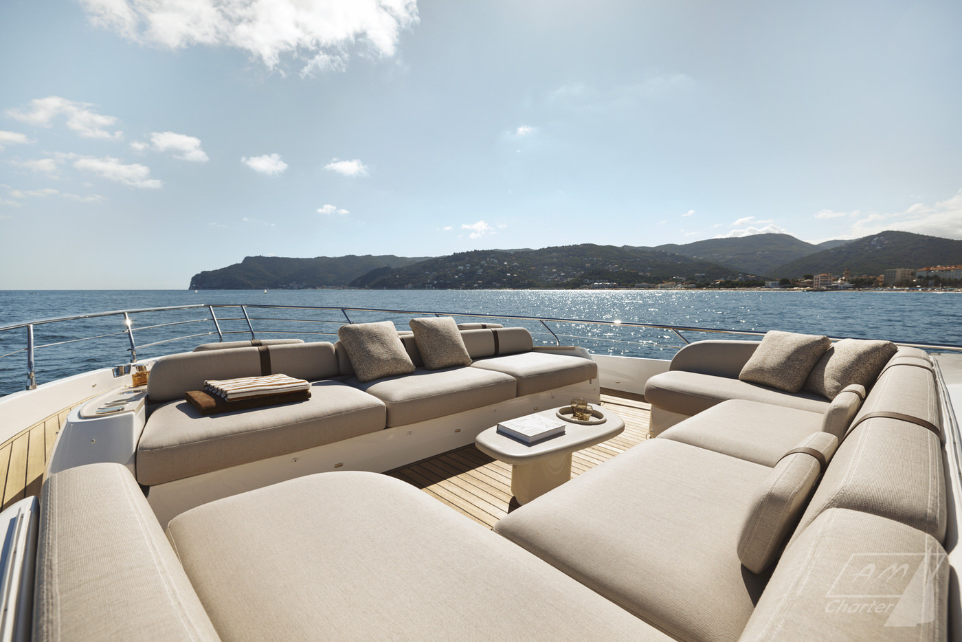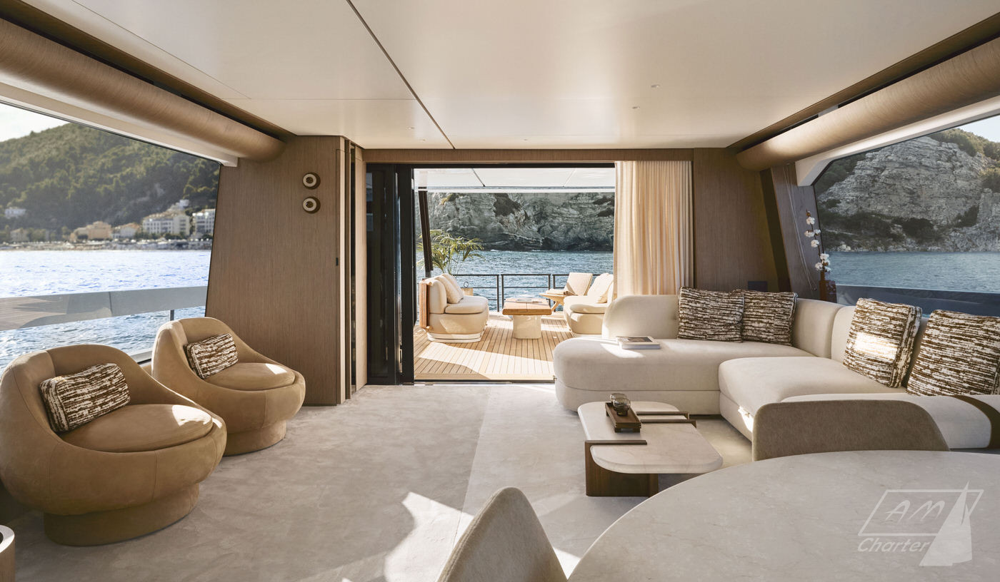 Azimut Fly 82 EXPLORA, varato nel 2025,  unisce l’eleganza e funzionalità attraverso scelte innovative di distribuzione degli spazi. Il salone è organizzato attorno a un grande tavolo da pranzo rotondo, toni caldi ed elementi dal carattere scultoreo definiscono ambienti avvolgenti e contemporanei. Offre 4 cabine per 8 ospiti (3 matrimoniali, 1 doppia). Questo modello introduce una soluzione inedita per la categoria: Deck2Deck™ Terrace, che estende il pozzetto di oltre un metro e mezzo grazie al portellone del garage ricoperto in teak che si solleva all’altezza del Main Deck. Inoltre lo yacht dispone di stabilizzatori, numerosi giochi d’acqua ed un equipaggio professionale di 4 persone.