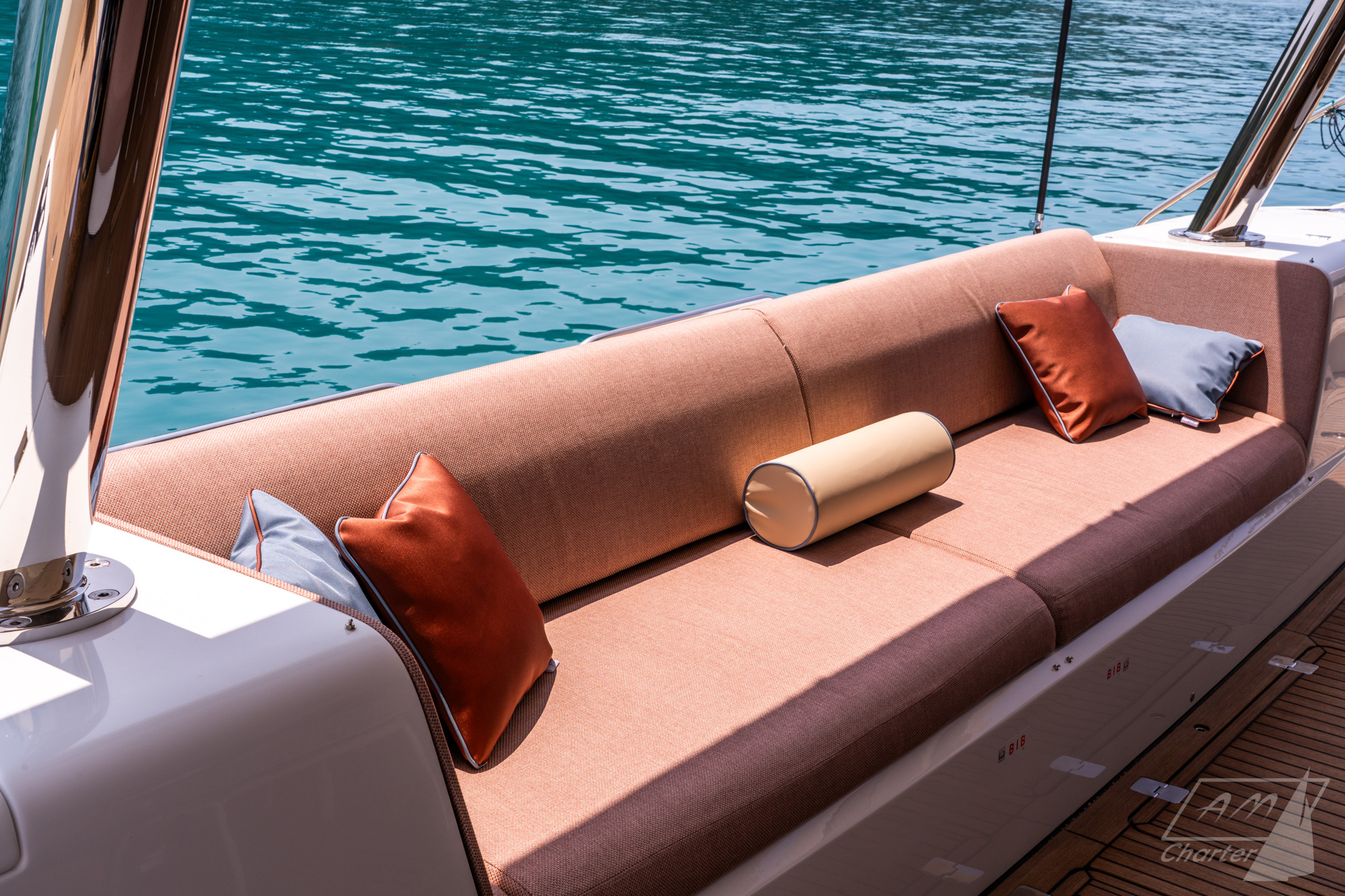 Catamarano Lagoon Sixty 5 GLORIA disponibile per charter settimanali in Italia. Ampio flybridge, dove l’area dedicata alla timoneria si fonde con una spaziosa zona relax. Qui si può godere di un panorama mozzafiato: uno sguardo privilegiato sull’orizzonte che cambia a ogni miglio.