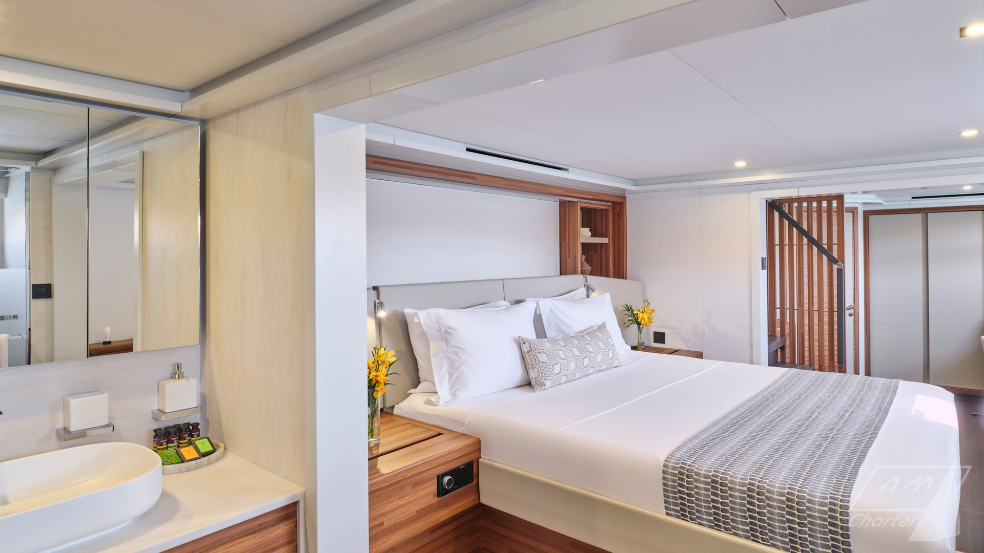 Fountaine Pajot 80 Aloia lussuoso catamarano con equipaggio disponibile per il noleggio in Grecia. Con il suo spazioso flybridge che offre un’autentica terrazza sull’oceano e un pozzetto di prua con ampi posti a sedere, questa imbarcazione è progettata per offrire il massimo del relax e del divertimento. All’interno, troverai interni straordinariamente moderni e incredibilmente spaziosi che trasudano comfort e lusso ad ogni angolo. Questo catamarano vanta un totale di 5 cabine, tra cui una sontuosa suite armatoriale e 4 cabine queen-size, tutte dotate di bagno privato. In questo modo ogni ospite a bordo gode della massima privacy e comodità. Un equipaggio professionale e attento, che aspettano con impazienza di viziarvi e soddisfare ogni vostro desiderio.