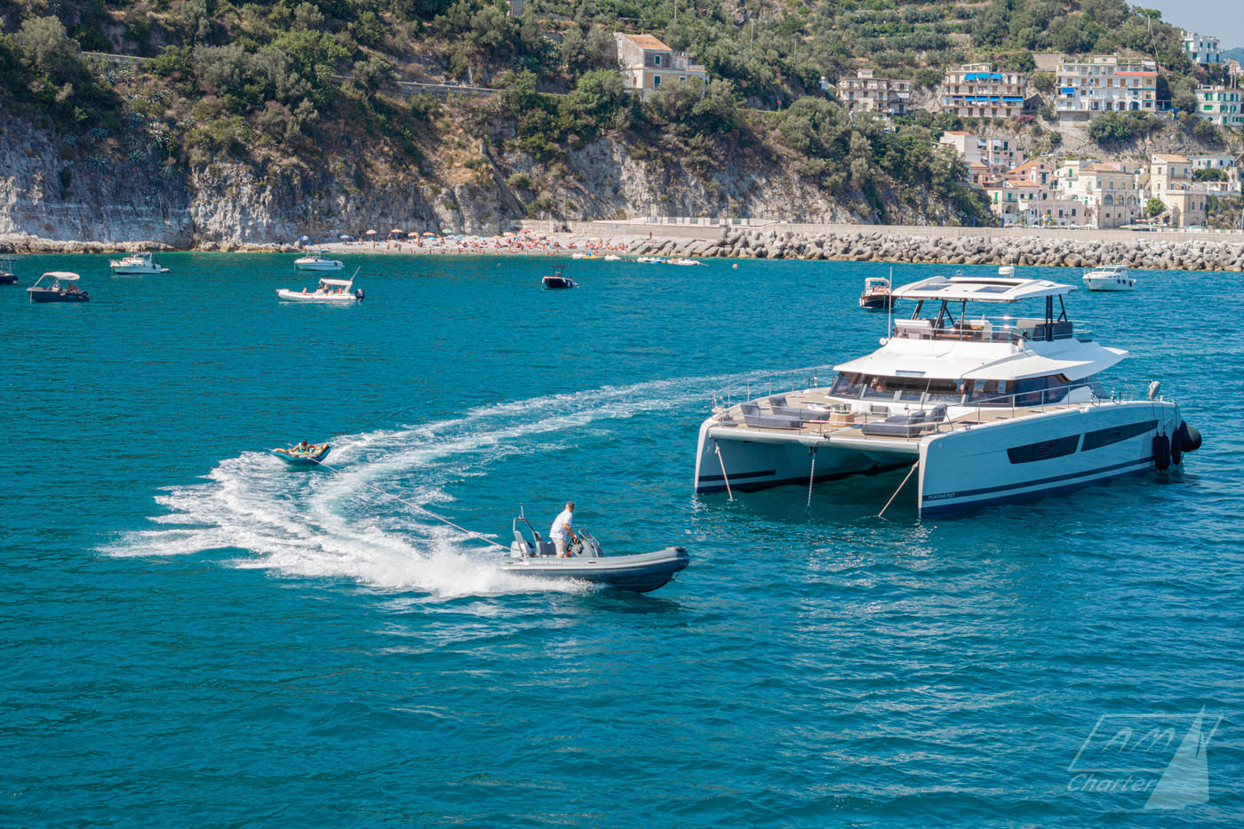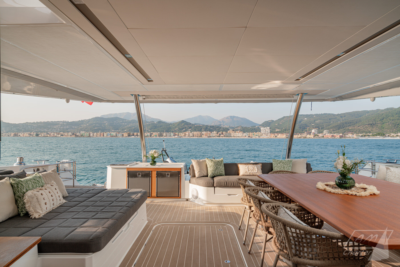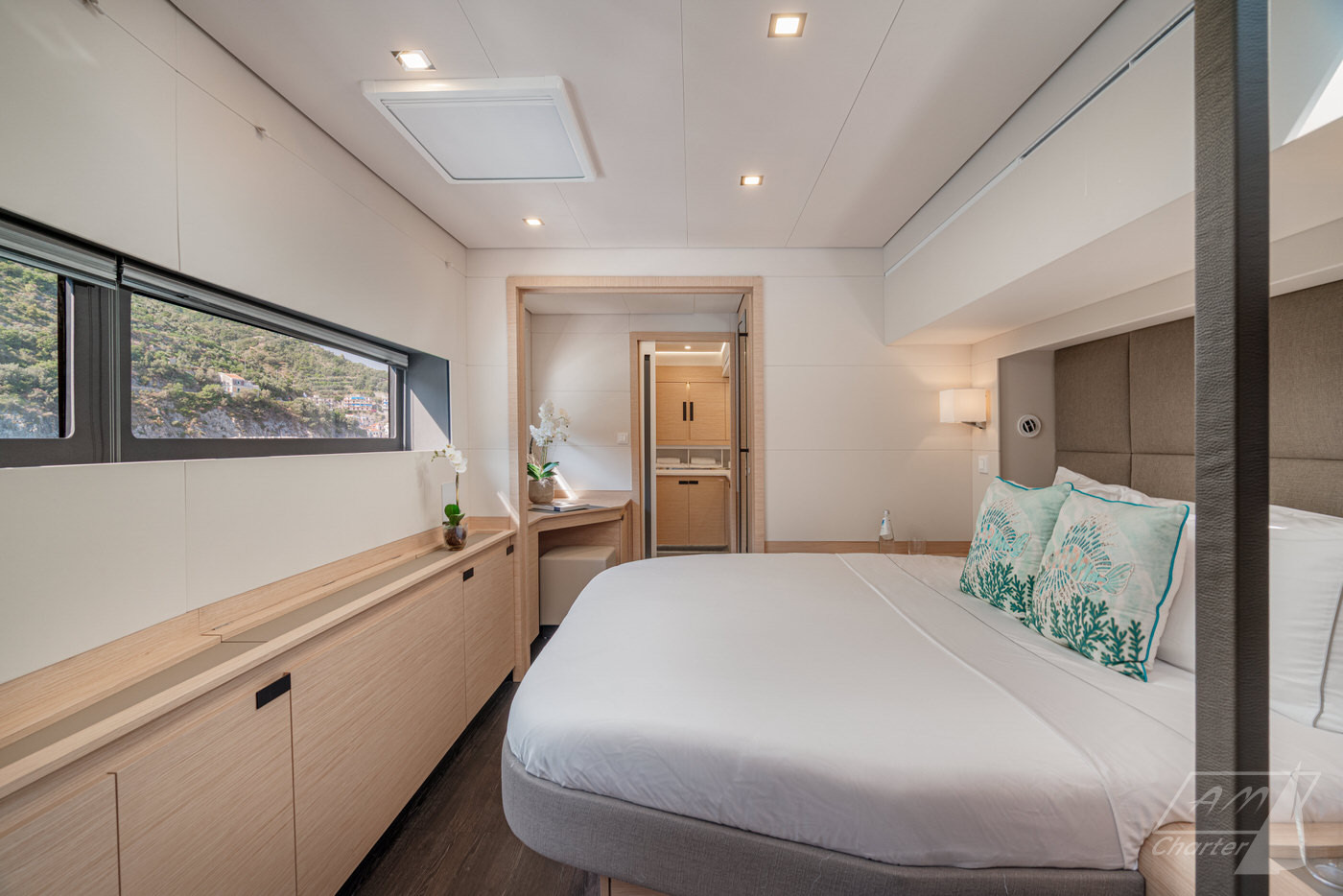 Sali a bordo di CORE e scopri l’Italia da una prospettiva completamente nuova. Questo straordinario Fountaine Pajot Power 67 CORE unisce le elevate prestazioni di un catamarano a motore all’eccellenza artigianale che da sempre distingue il marchio Fountaine Pajot. Gli spazi dedicati agli ospiti a bordo di Fountaine Pajot Power 67 CORE comprendono 4 cabine finemente arredate. Completano l’allestimento due ulteriori cabine, entrambe dotate di letto matrimoniale e bagno privato en-suite, per garantire il massimo comfort a tutti gli ospiti. A bordo è presente un equipaggio professionale di 4 membri, attento a ogni dettaglio e pronto ad assicurare un’esperienza rilassante e di assoluto livello.