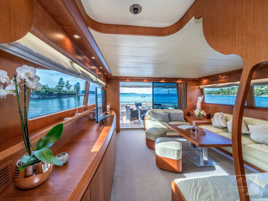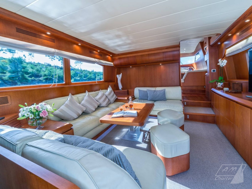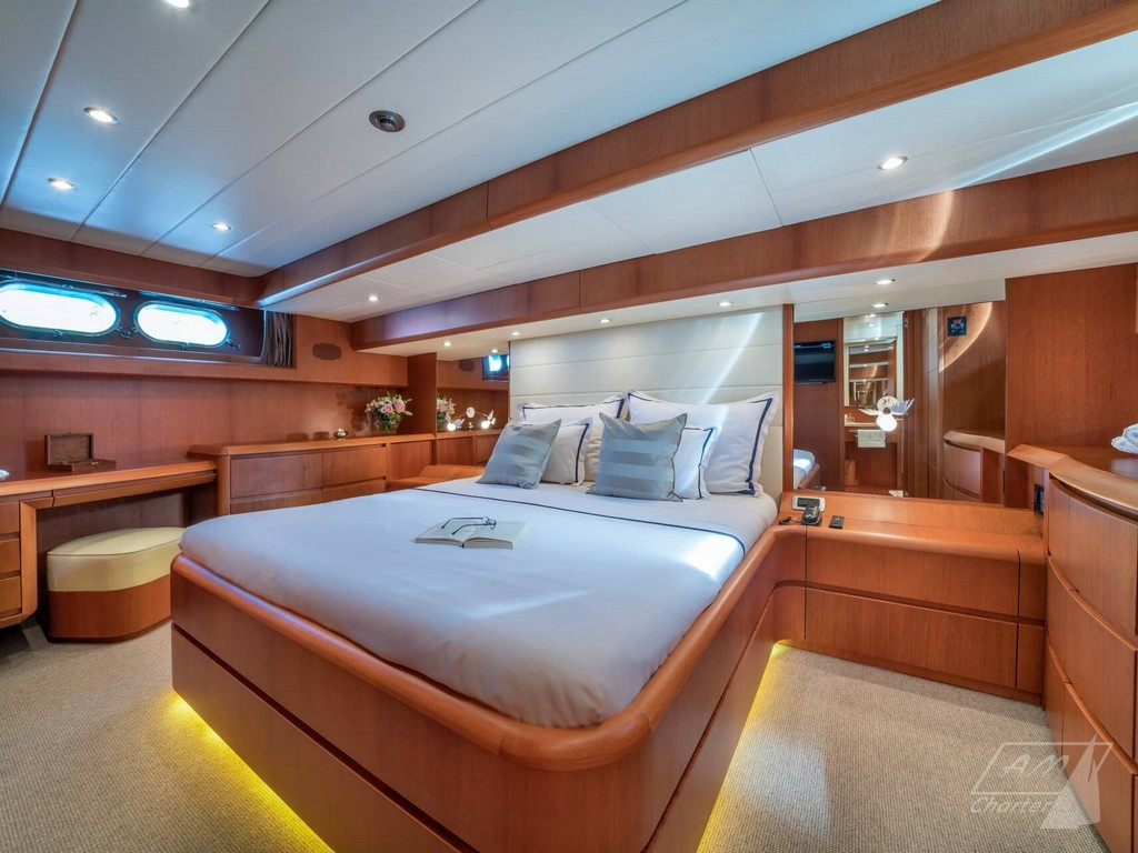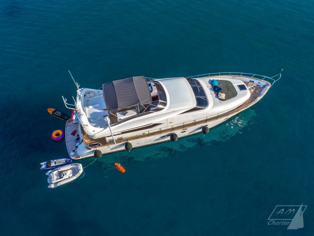 L’equipaggio professionale composto da 2 persone, attenti ad ogni dettaglio. Vasta scelta di giochi d’acqua, A/C, stabilizzatori, area flybridge.