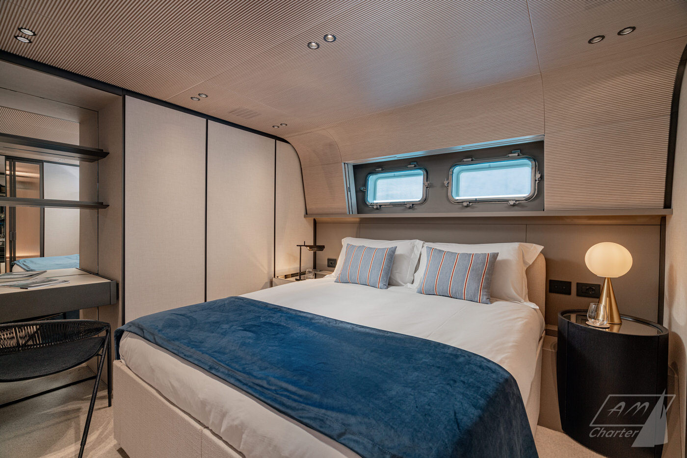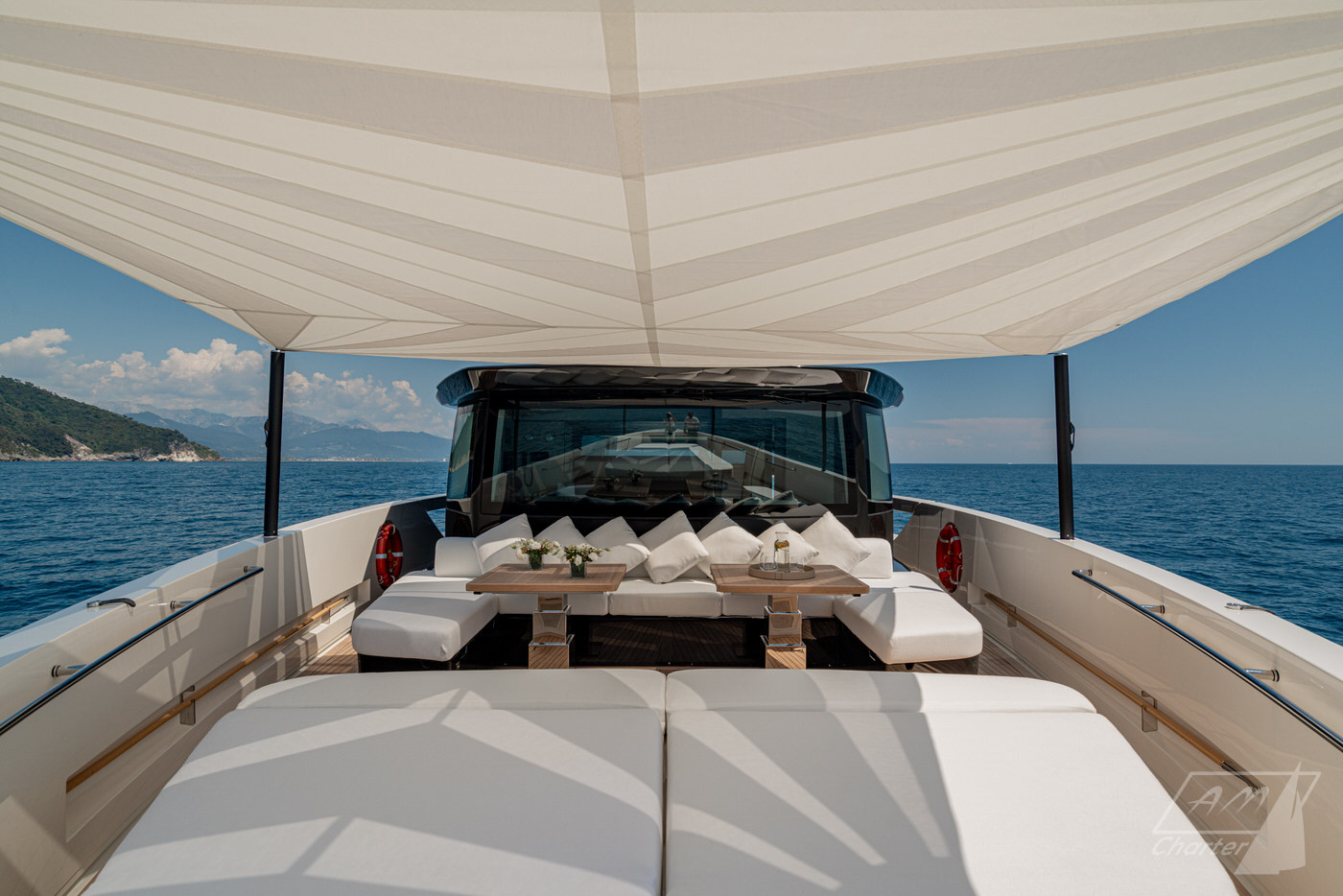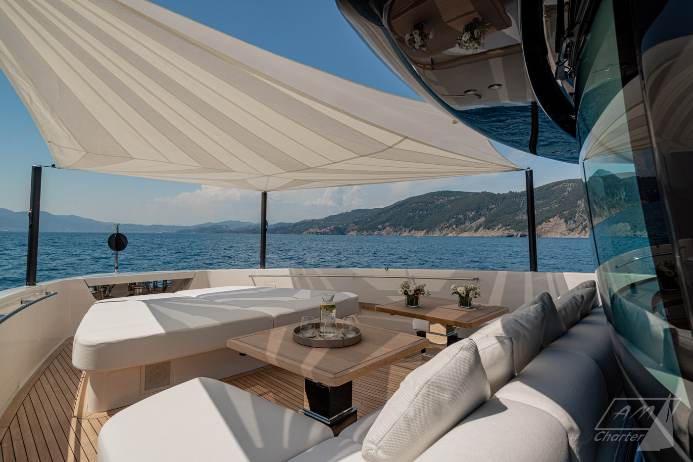 Sanlorenzo SP92 FORZA QUIETA, varato nel 2025 è disponibile per charter settimanali nel Mediterraneo. Può ospitare comodamente 8 persone in 4 eleganti cabine: 1 suite armatoriale, 2 cabine VIP e 1 cabina doppia. Ampi spazi esterni: un prendisole completamente ombreggiato e dotato di un hardtop retrattile, offrendo l’ambiente ideale per godersi viste panoramiche sull’Italia in totale comfort. FORZA QUIETA è dotato di stabilizzatori sia all’ancora che in navigazione, garantendo un’esperienza fluida e confortevole. Un equipaggio professionale di 4 persone, attenti ad ogni dettaglio.