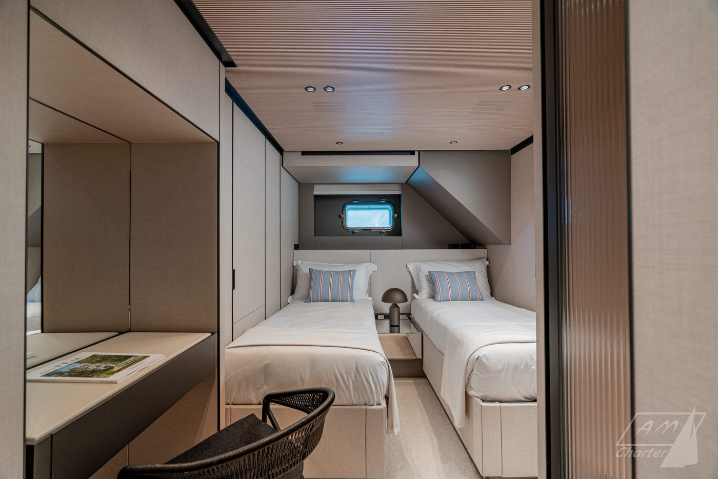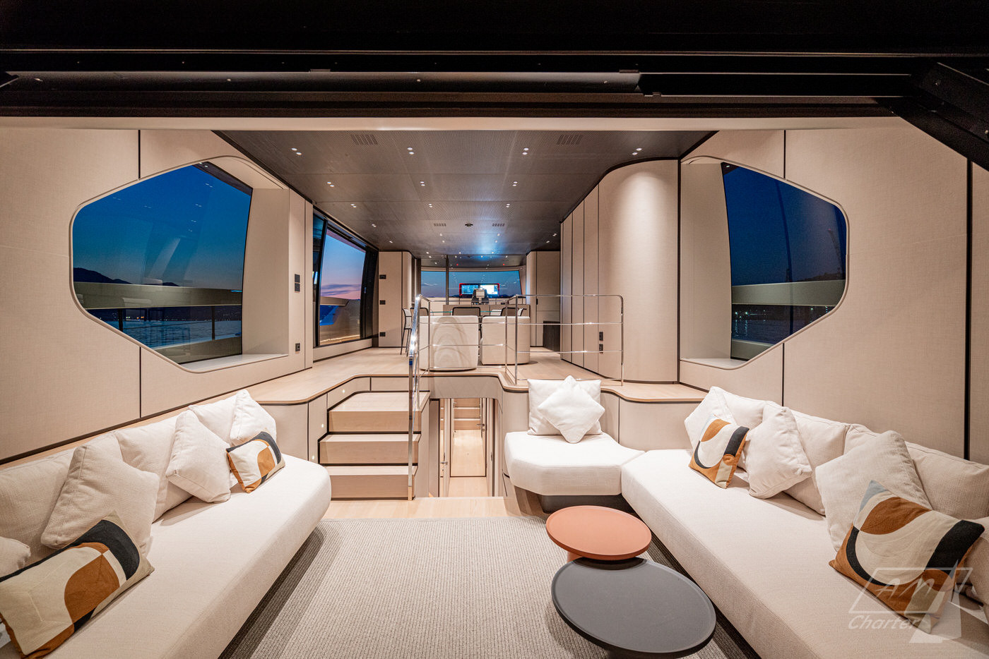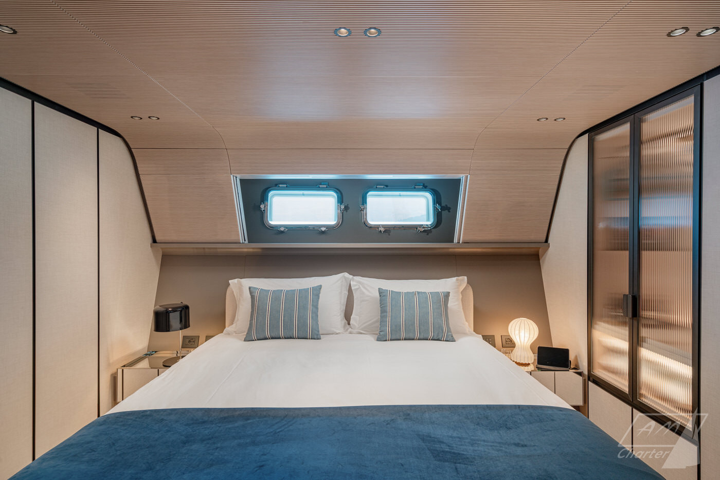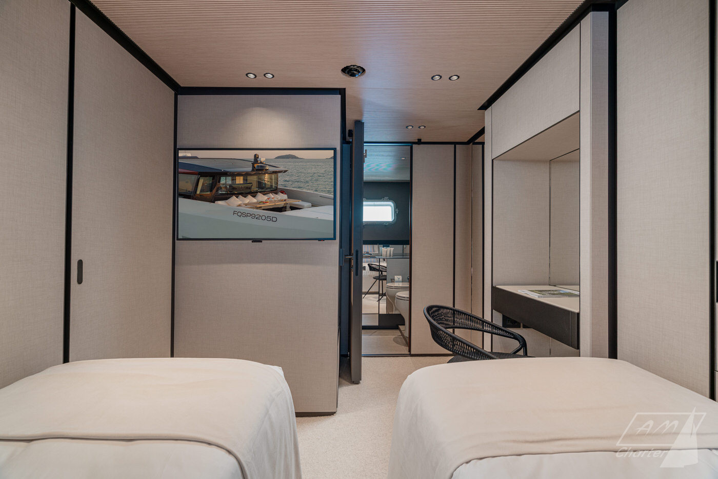 Sanlorenzo SP92 FORZA QUIETA, varato nel 2025 è disponibile per charter settimanali nel Mediterraneo. Può ospitare comodamente 8 persone in 4 eleganti cabine: 1 suite armatoriale, 2 cabine VIP e 1 cabina doppia. Ampi spazi esterni: un prendisole completamente ombreggiato e dotato di un hardtop retrattile, offrendo l’ambiente ideale per godersi viste panoramiche sull’Italia in totale comfort. FORZA QUIETA è dotato di stabilizzatori sia all’ancora che in navigazione, garantendo un’esperienza fluida e confortevole. Un equipaggio professionale di 4 persone, attenti ad ogni dettaglio.