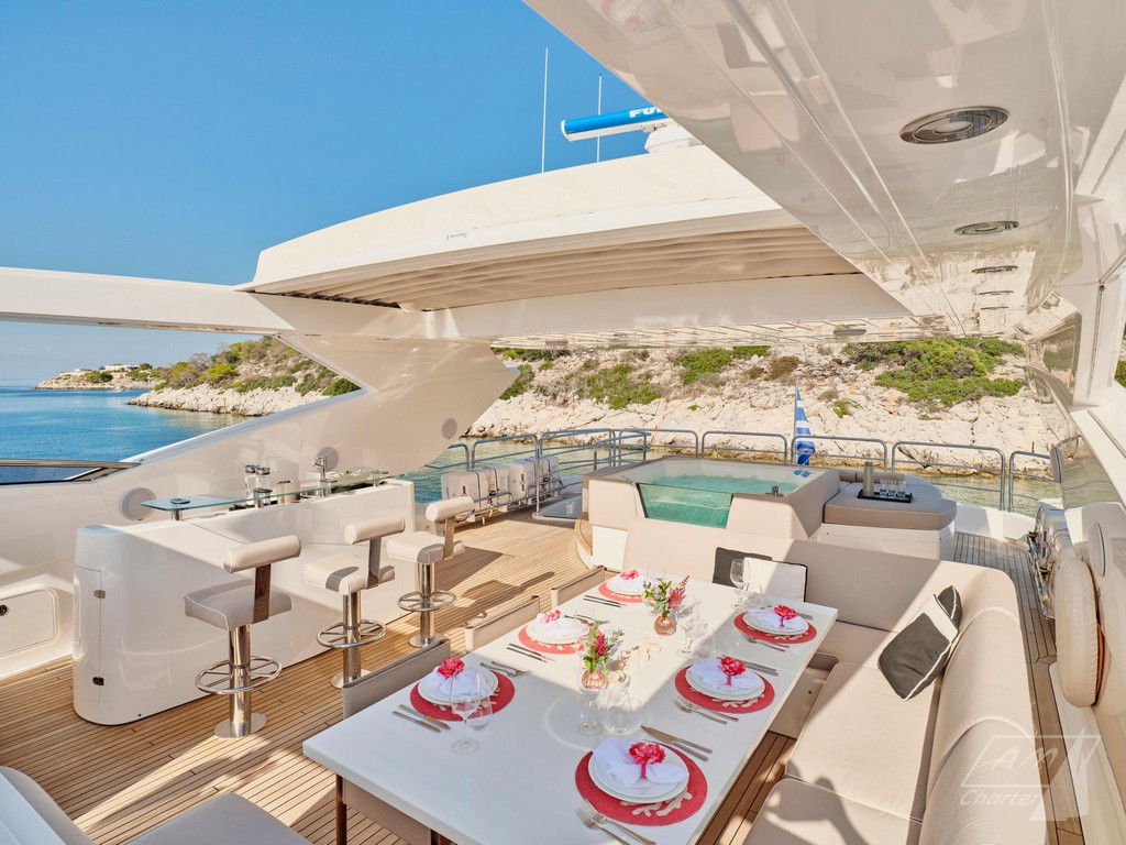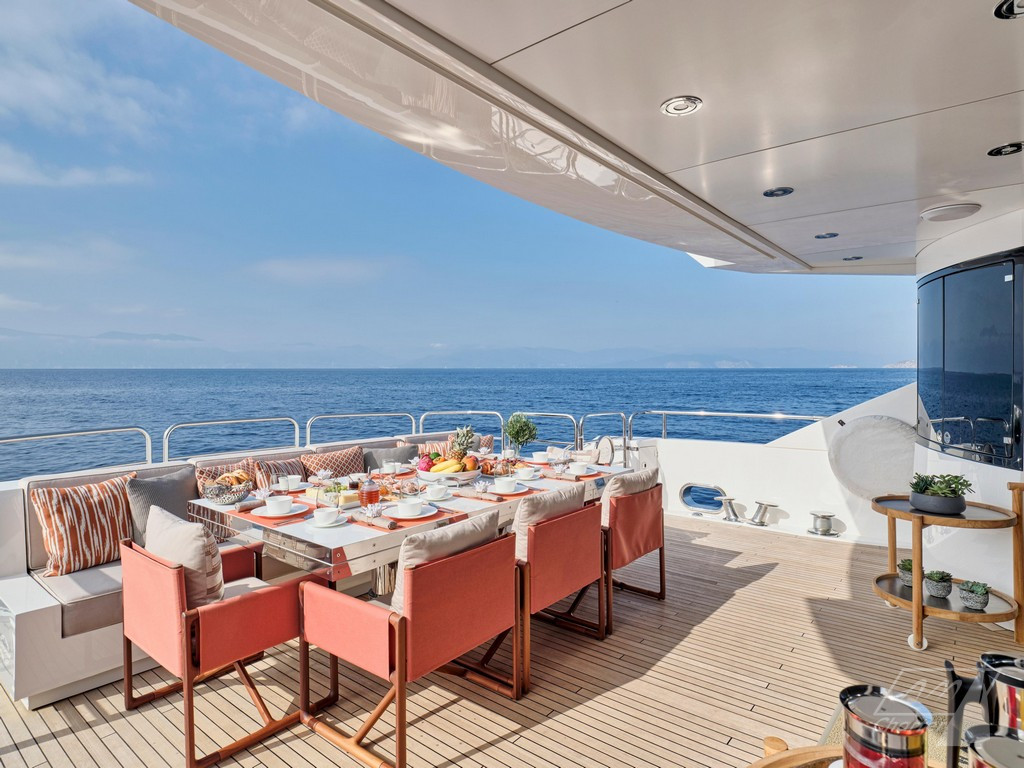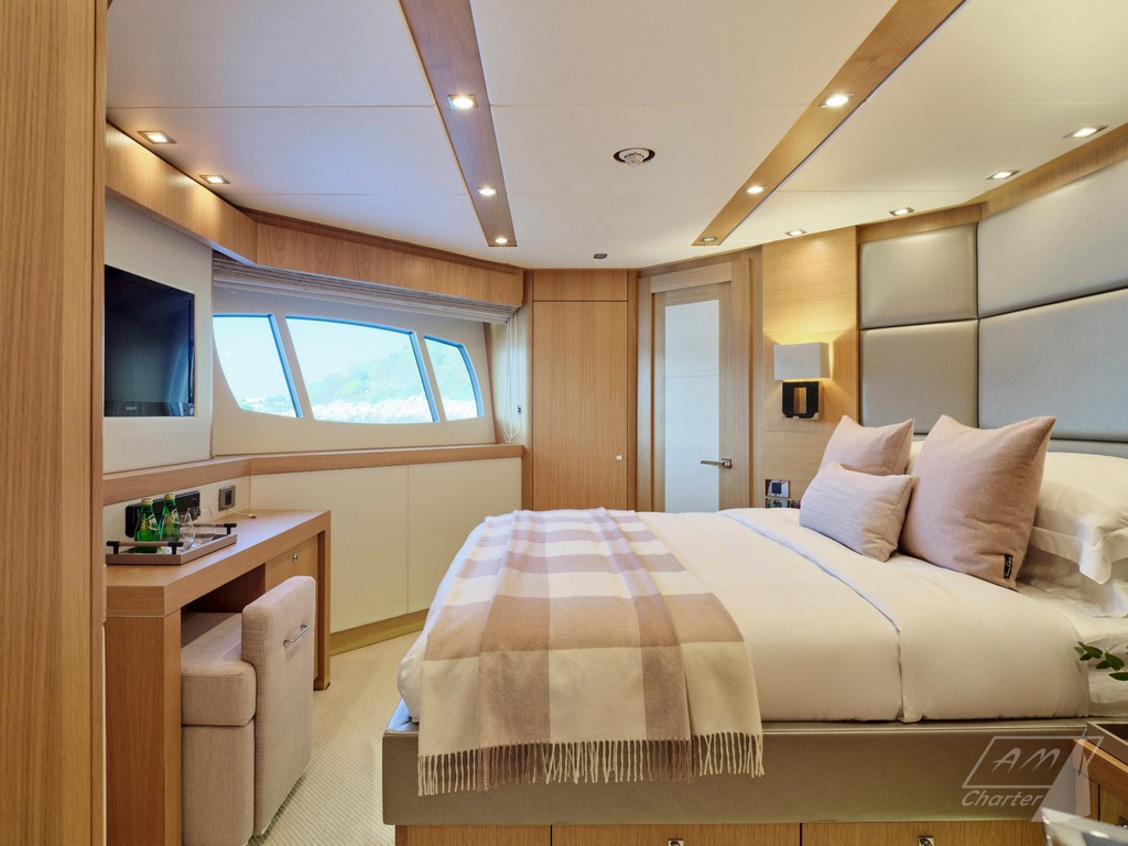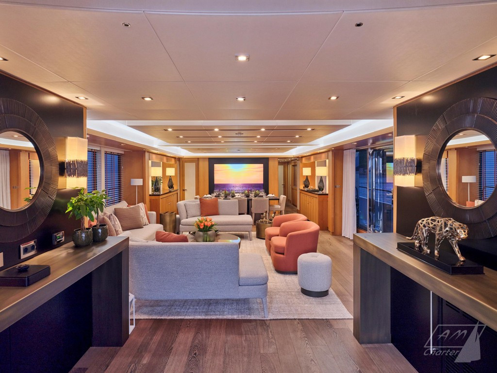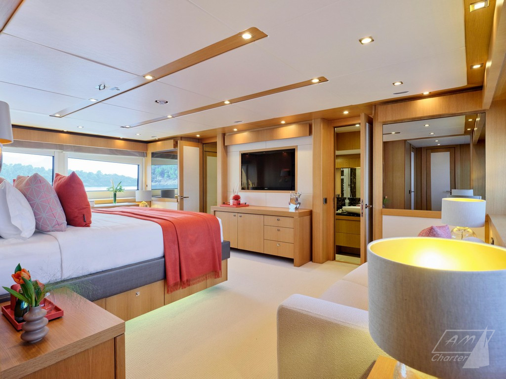 Varato nel 2013, Sunseeker 114 Makani II offre il volume di uno yacht di 40 metri. Dotato dei comfort tipici di un’imbarcazione della sua statura: terrazze, salone, grandi finestre a scafo, sistema di stabilizzazione completo, una vasca idromassaggio sul prendisole e tre spazi per mangiare all’aperto. Ampio refit interno nel 2023. La cabina armatoriale, situata sul ponte principale, dispone di servizi con bagno privato a doppio ingresso e 2 cabine armadio. Il ponte inferiore dispone di quattro cabine ospiti, due matrimoniali e due doppie entrambe trasformabili in matrimoniali, offrendo la possibilità di cinque cabine doppie. Sunseeker 114 Makani II ha un equipaggio di 7 persone, celebrato per le sue prestazioni nella stagione 2023, garantisce un’esperienza di noleggio eccezionale.