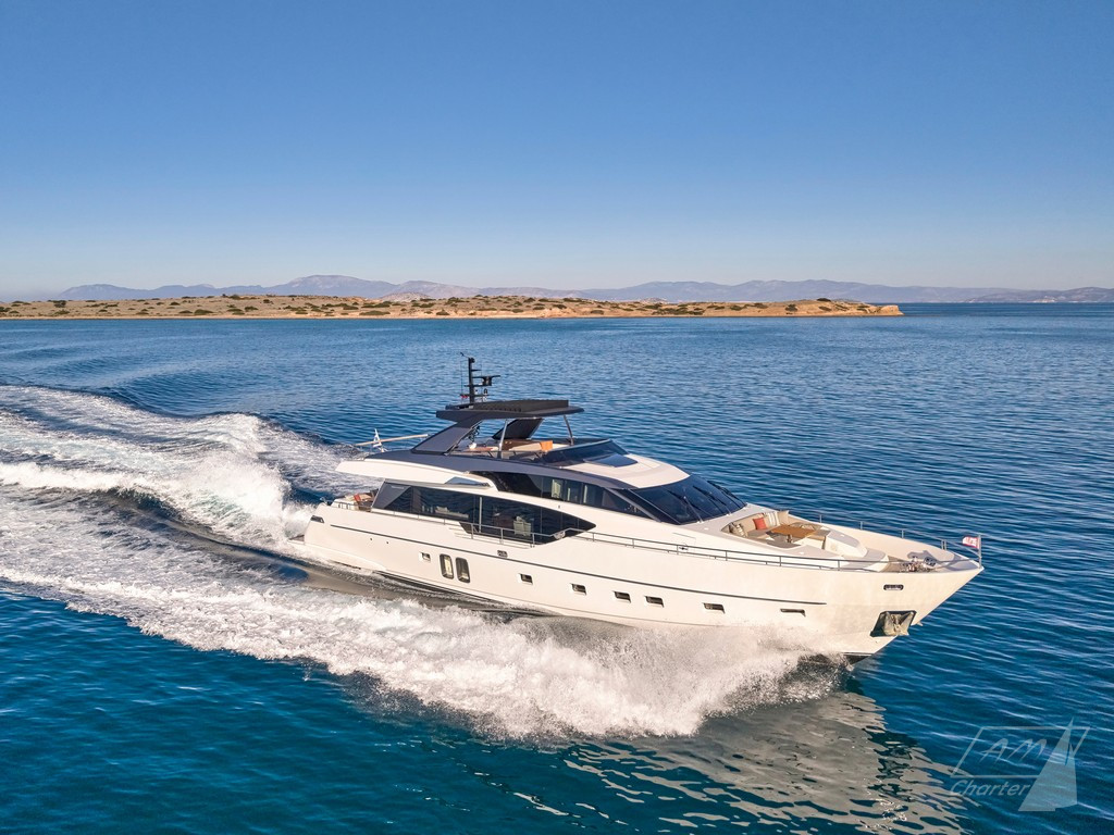 Sanlorenzo 86 Akasti, the youngest yacht in its category, just launched by the famous Sanlorenzo shipyard in 2024.