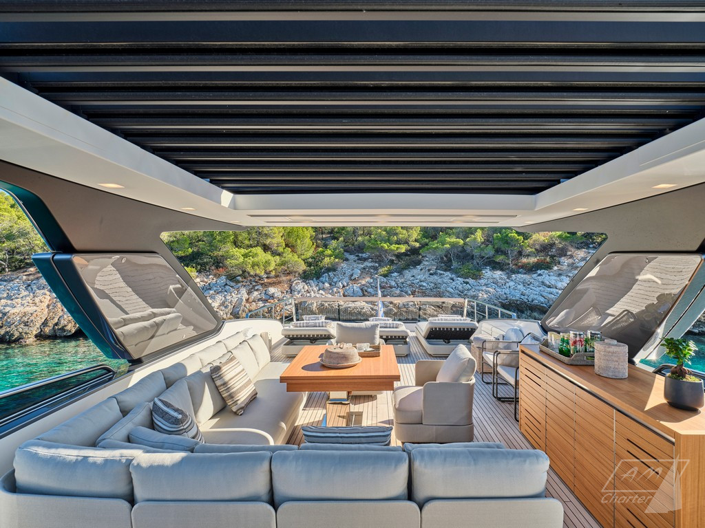 Its elegant interior, designed to the best technical specifications, make it perfect for a luxurious experience at sea. The exteriors are characterized by large entertainment areas, suitable for all activities.