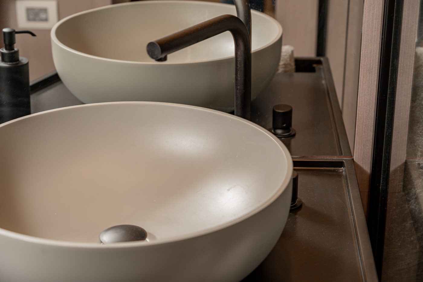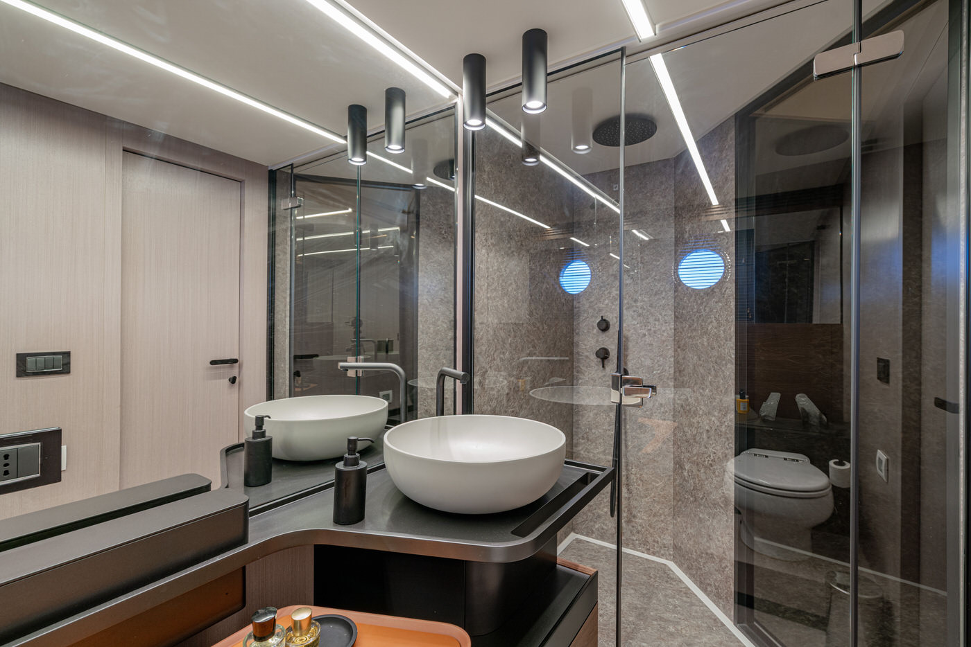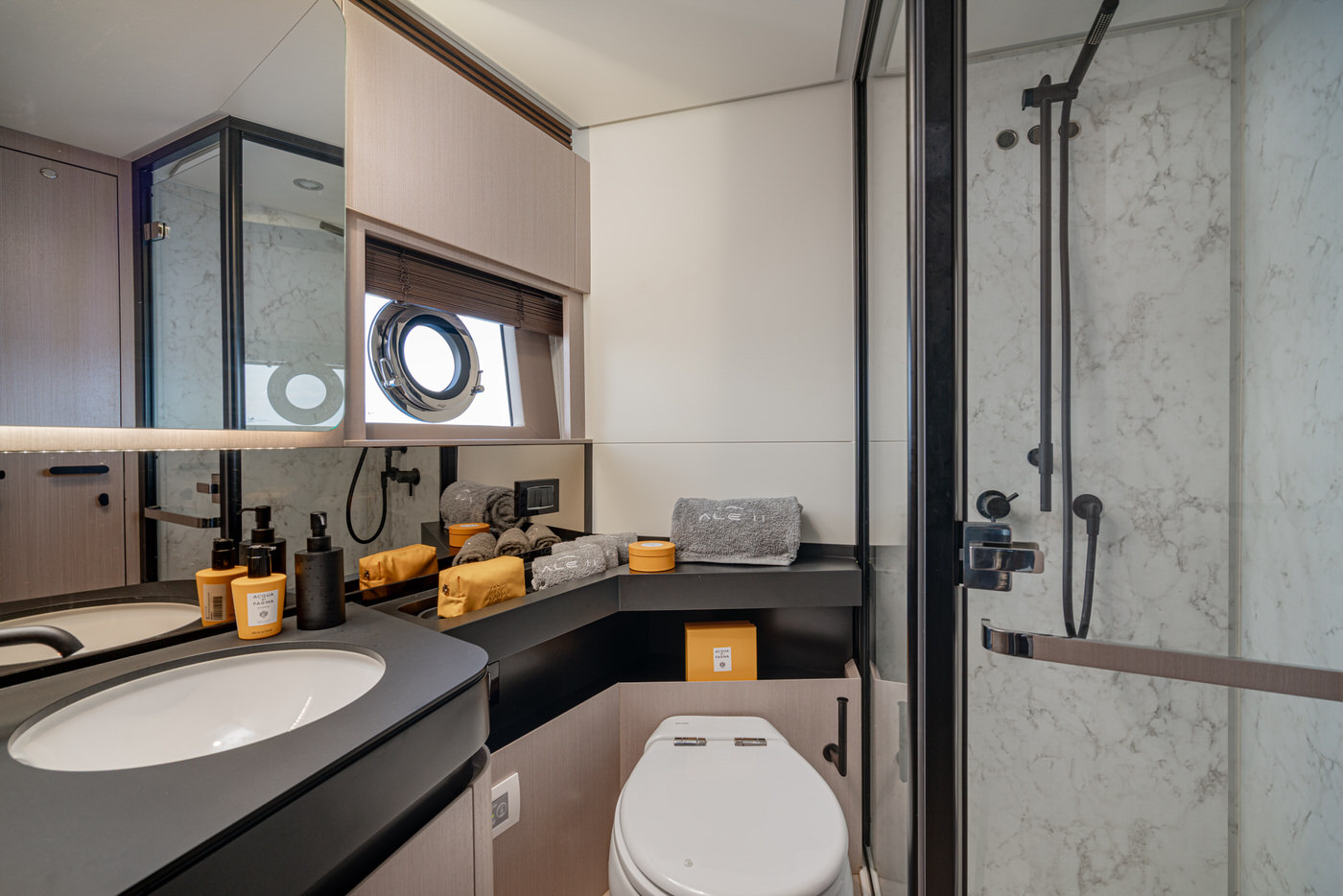 It can accommodate up to 8 guests in 4 cabins: an owner’s suite, a double cabin and two twin cabins. The owner’s cabin has a dedicated wardrobe area and private bathroom; Only one of the twin cabins has no en-suite bathroom.