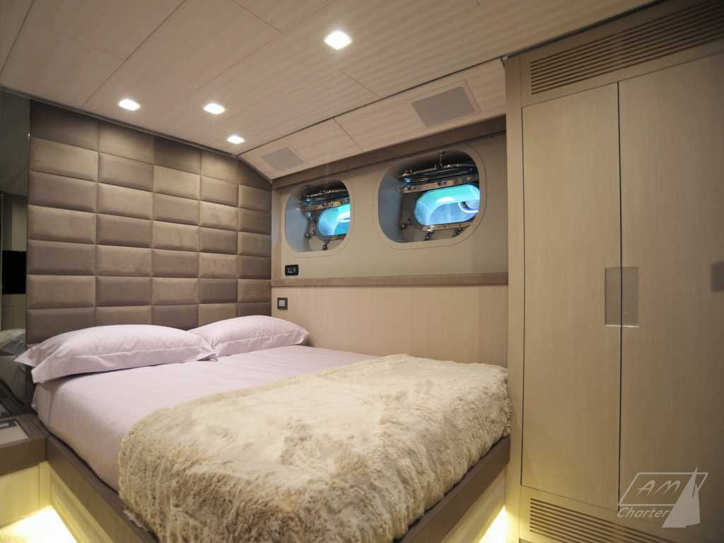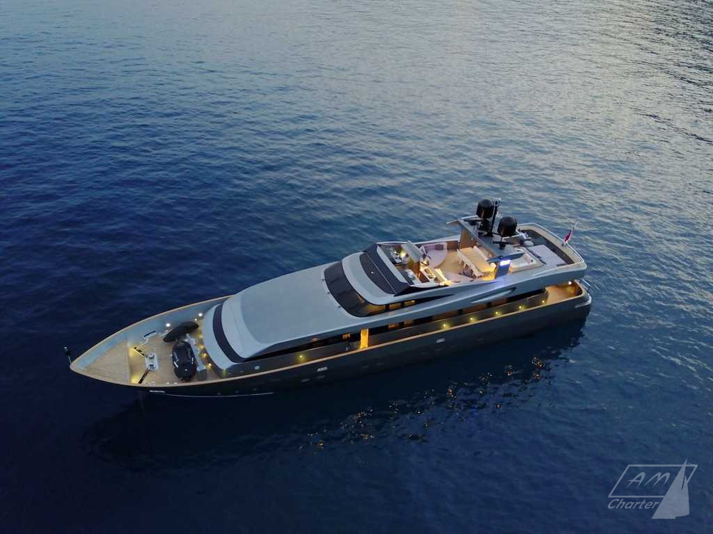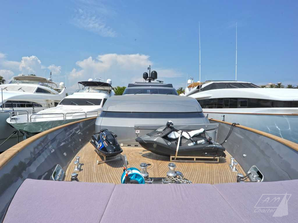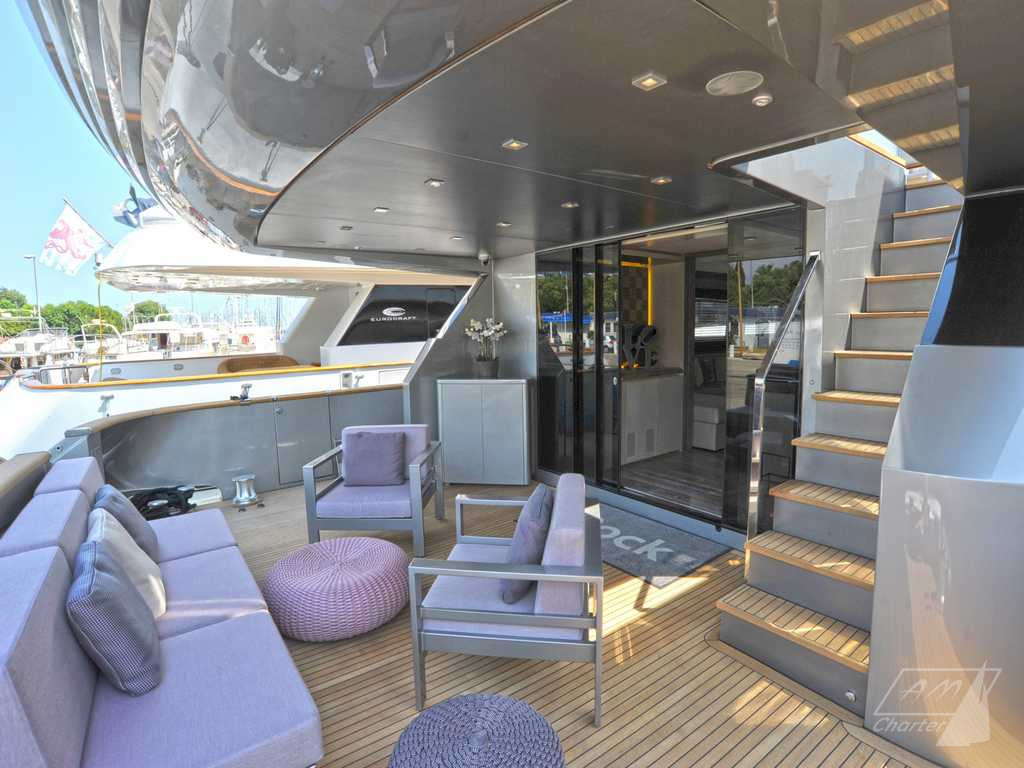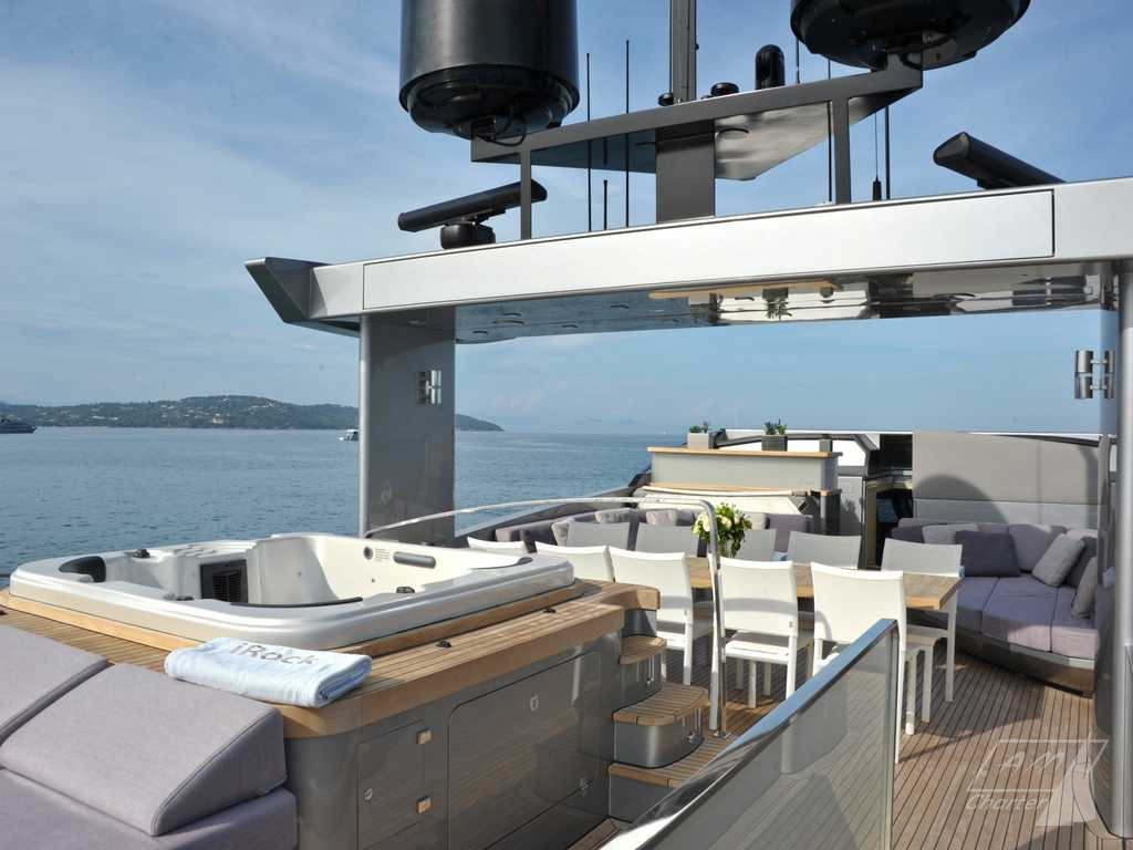 Baglietto 34mt iRock is a beautiful motor yacht, with 5 cabins for up to 11 guests. Its exceptional crew of 6 people pamper their guests to offer best charter experience. Large outdoor and indoor spaces, jacuzzi deck, stabilizers, numerous water games. Available for weekly charters in France and Italy.