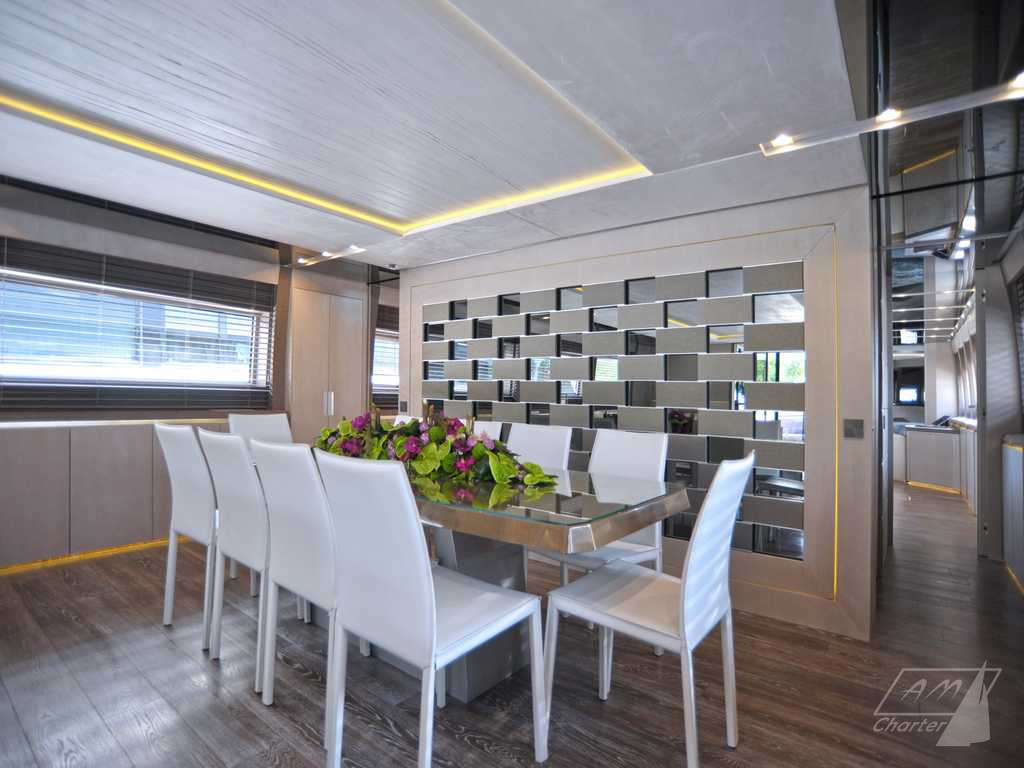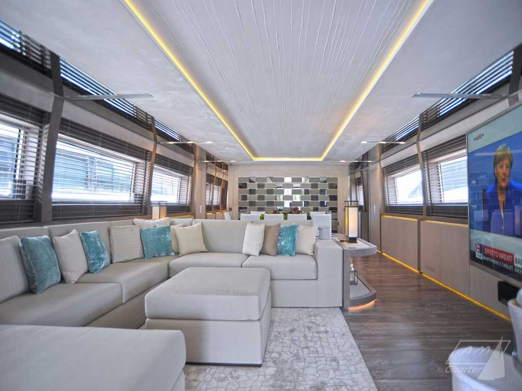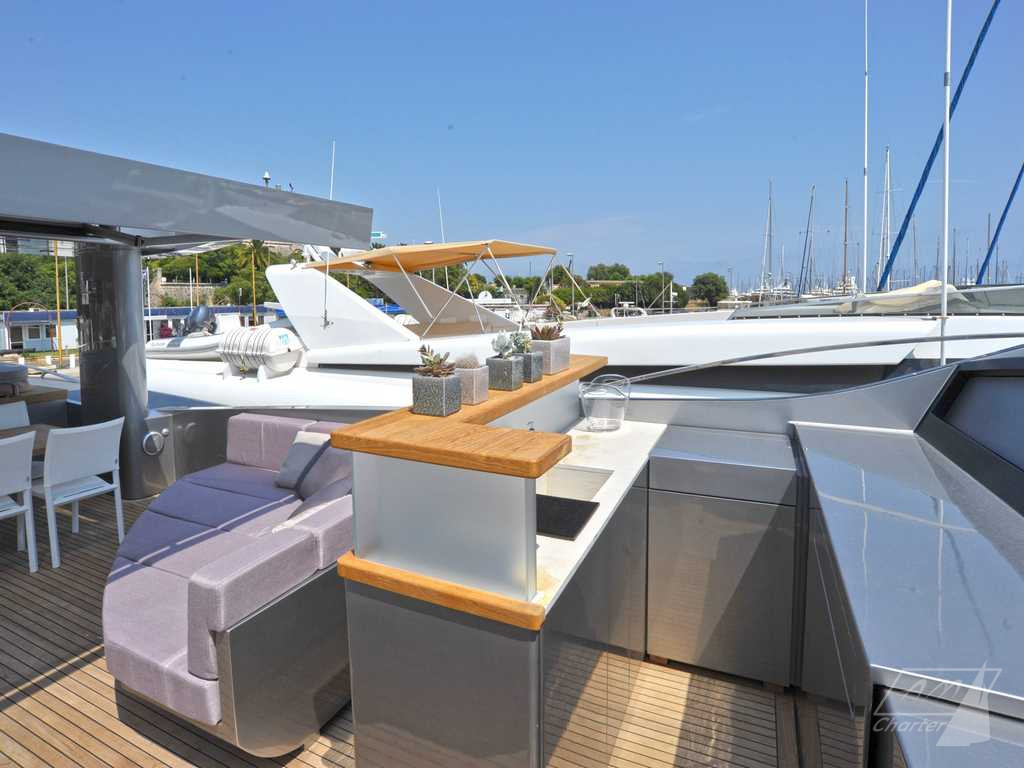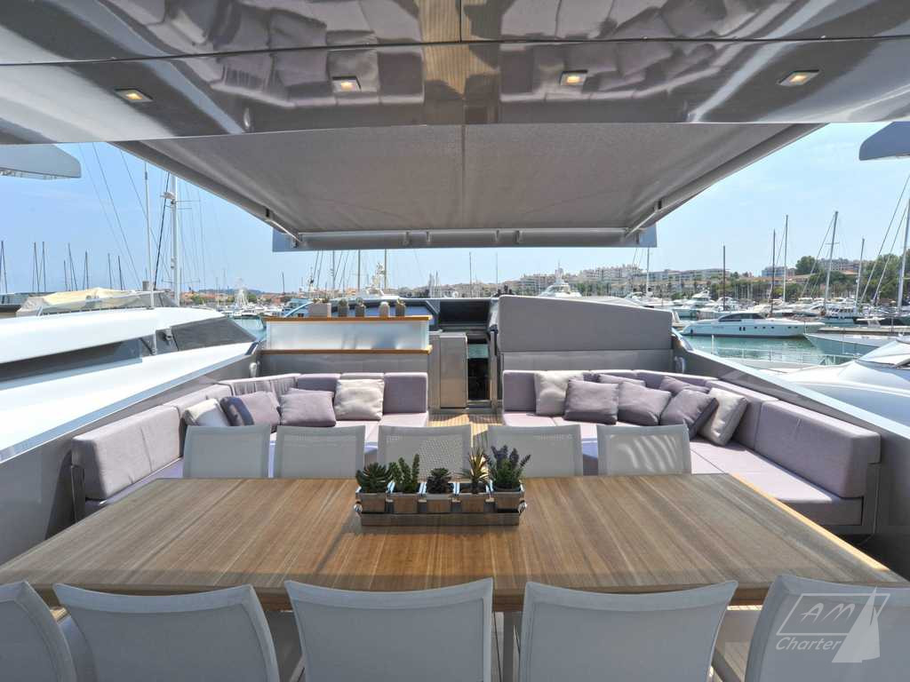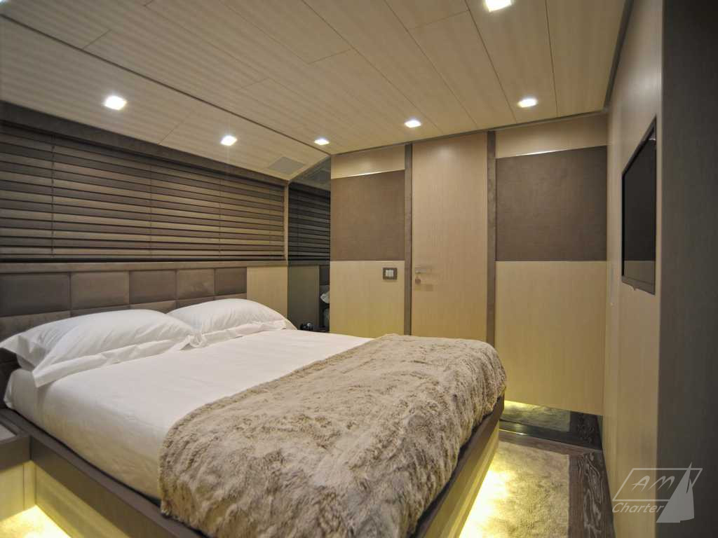 Baglietto 34mt iRock is a beautiful motor yacht, with 5 cabins for up to 11 guests. Its exceptional crew of 6 people pamper their guests to offer best charter experience. Large outdoor and indoor spaces, jacuzzi deck, stabilizers, numerous water games. Available for weekly charters in France and Italy.