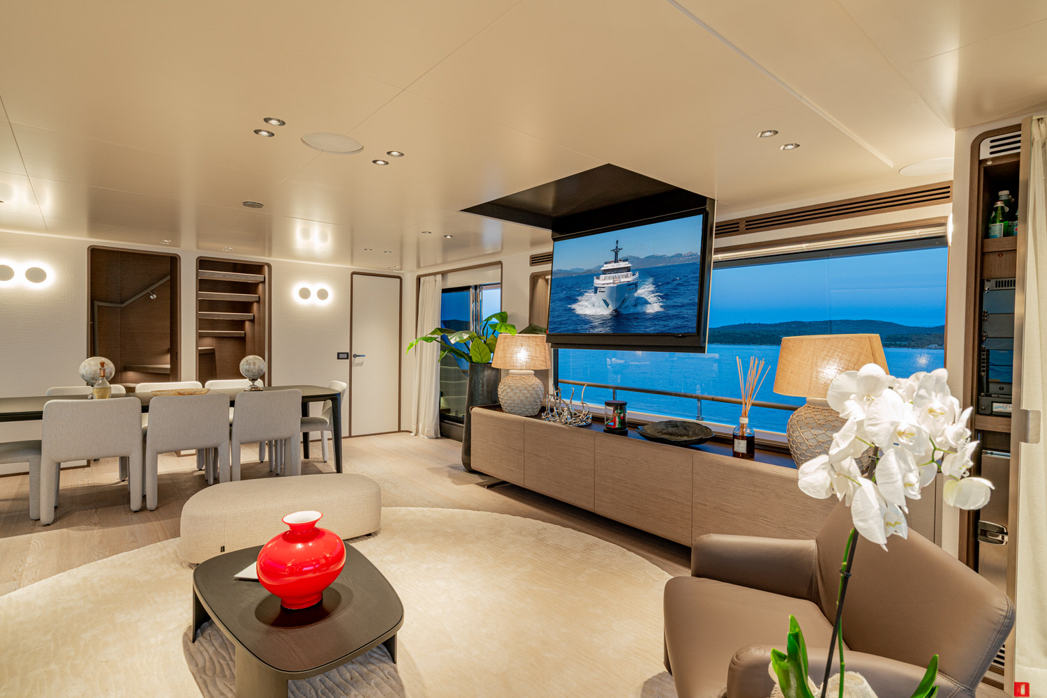 The Ferretti Custom Line Navetta 30 TWINS is a yacht designed to offer maximum comfort and livability, without any compromise. The large outdoor spaces invite you to relax and conviviality, while the refined and elegant interiors guarantee an exclusive on-board experience at every moment of navigation. The boat can accommodate up to 10 guests in 5 spacious cabins: three double cabins, a twin cabin and a convertible cabin, ideal for meeting different layout and privacy needs. Equipped with stabilizers for smooth and comfortable sailing at all times, the yacht ensures relaxation even during the longest crossings. Numerous water toys, low consumption and a professional crew of 6 people, attentive to every detail.